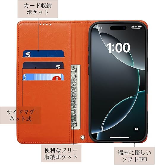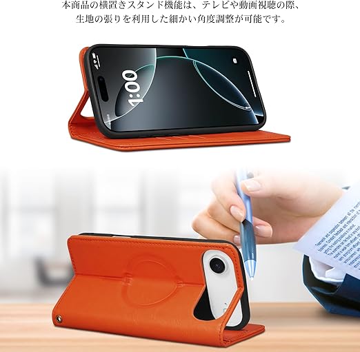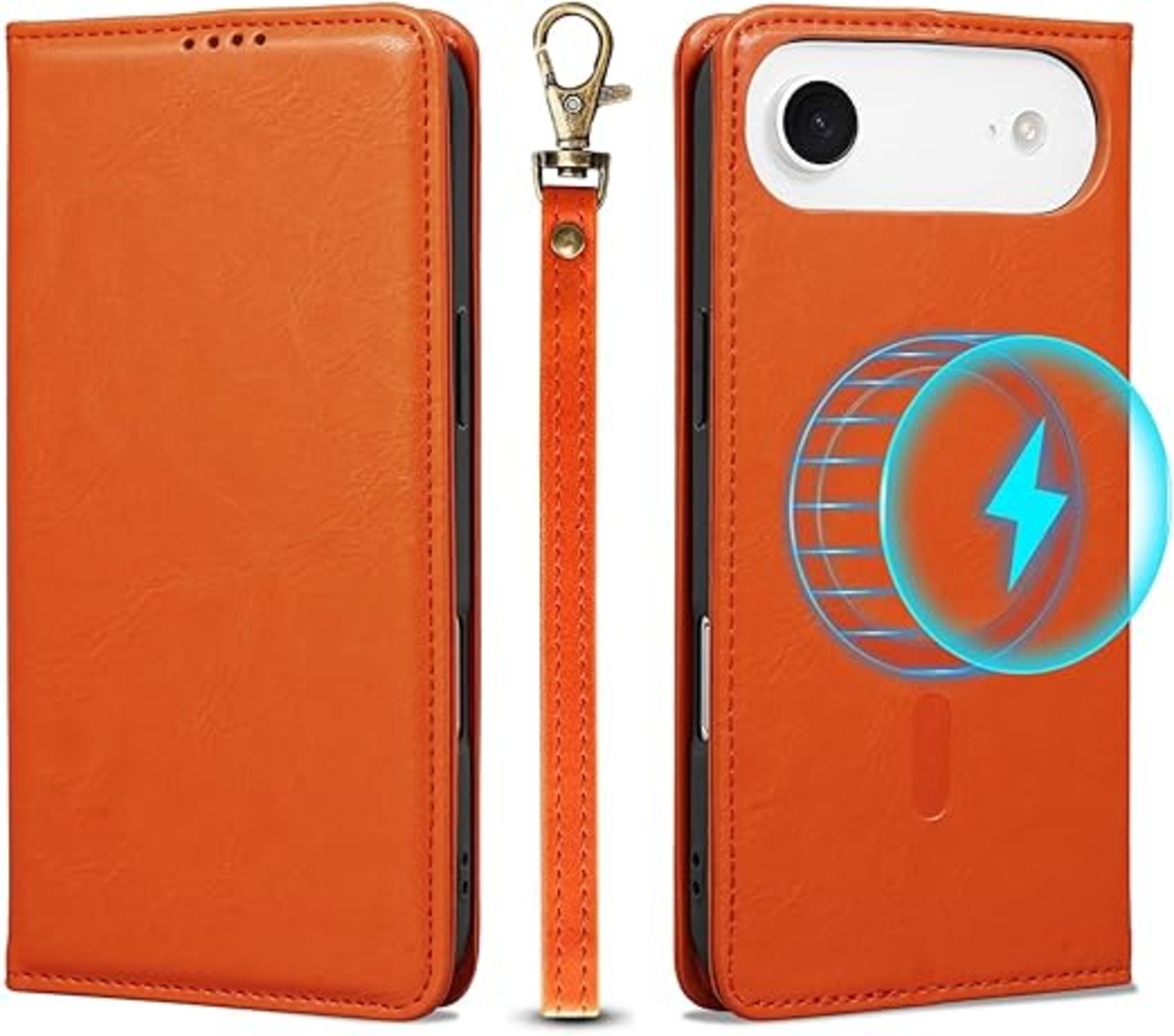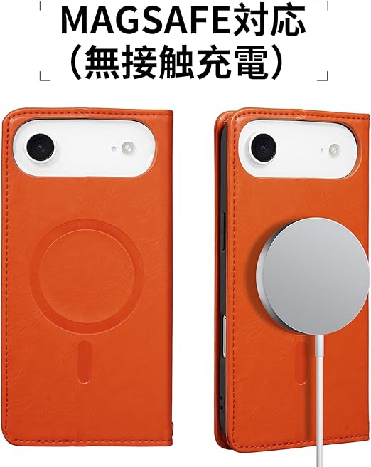 【Keallce】iPhone Air ケース 手帳型 スマホケース カード収納 MagSafe対応 ストラップ付き スタンド機能 マグネット付き PUレザー 耐衝撃 全面保護 iPhone 17 Air カバー 6.5インチ オレンジ a