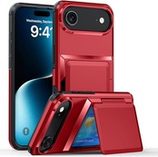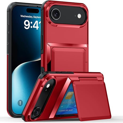 KeKeYou iPhone 17 Air 用 ケース カード収納 3枚ICカード収納 背面耐衝撃構造 米軍MIL規格 耐衝撃 全面保護 2層構造 擦り傷防止 PC 背面収納 アイフォン17 Air用 カバー(iPhone 17 Air用,赤) a