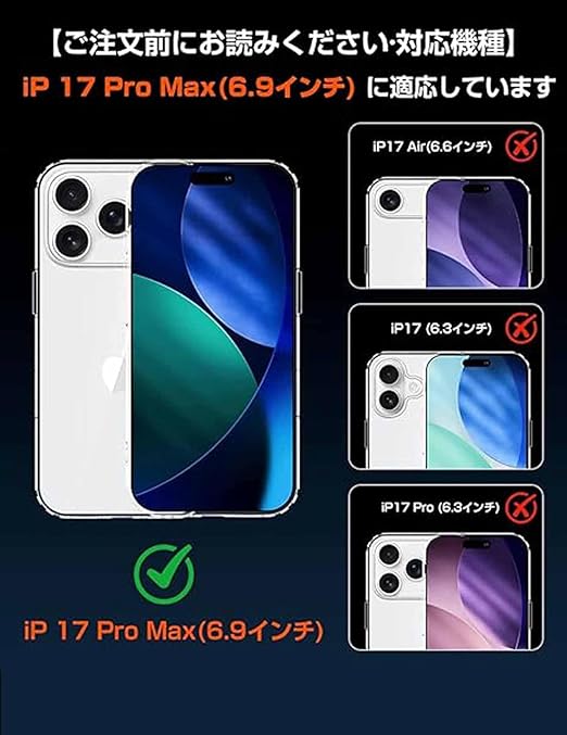 【対応機種】iPhone 17 Pro Max 。本ガラスフィルムは本体端部のカーブによるフィルム剥がれや、浮き上がりの防止、スマホケースの装着スペースを確保するため、本体の曲面の縁にスペースを残すデザインとなっています。