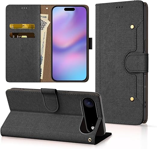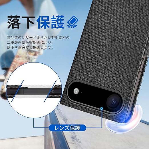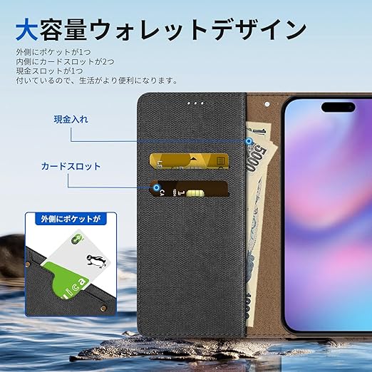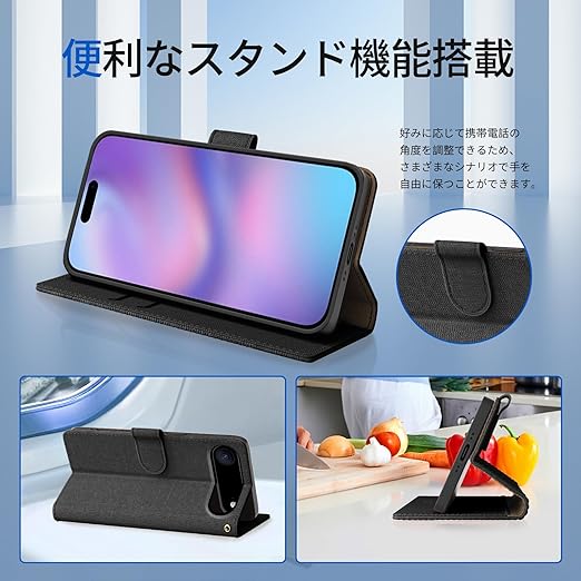 iPhone 17 Air 用の 手帳型 ケース 財布型 耐衝撃 カードポケット付き アイフォン 17Air と互換性のある スマホケース ヴィンテージデニム風レザー カード収納 スタンド機能 いphone 17 air に適合する 携帯カバー 全面保護 ラップホール付き 高級レザー マグネット式 耐摩擦 おしゃれ ブラック a