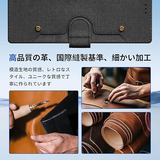【ヴィンテージデニム風レザーケース】ケース表面には、織り模様を再現した高級PUレザーを使用し、デニムテイストを取り入れたクラシックなデザインに仕上げました。レザーの上質な質感とデニム風のカジュアルさが融合し、ファッション性と時代