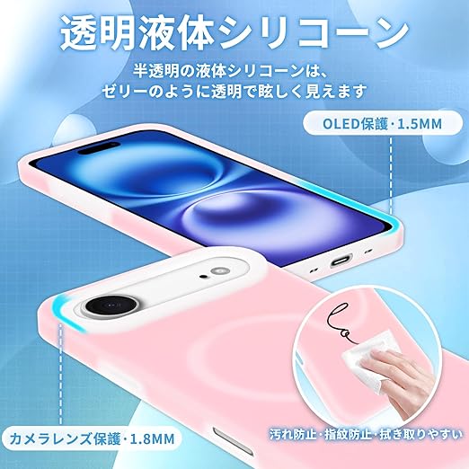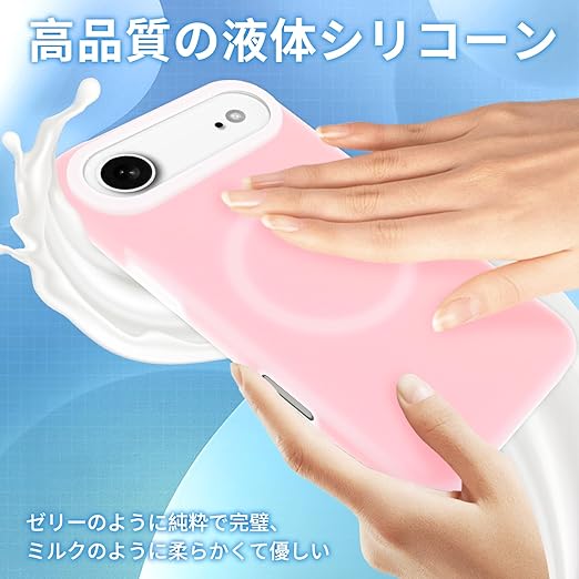 iPhone 17 Air に適合する ケース マグセーフ対応 液体シリコン 耐衝撃 【ジェリータッチシリーズ】 いphone 17Air 用の スマホケース 5層構造 さらさら手触り [なめらかミルクシリコン] 衝撃吸収 指紋防止 アイフォン 17 airと互換性のある カバー 超防汚性 滑り止め ワイヤレス充電対応 超軽量 薄型,ピンク (ゼリーピンク) a