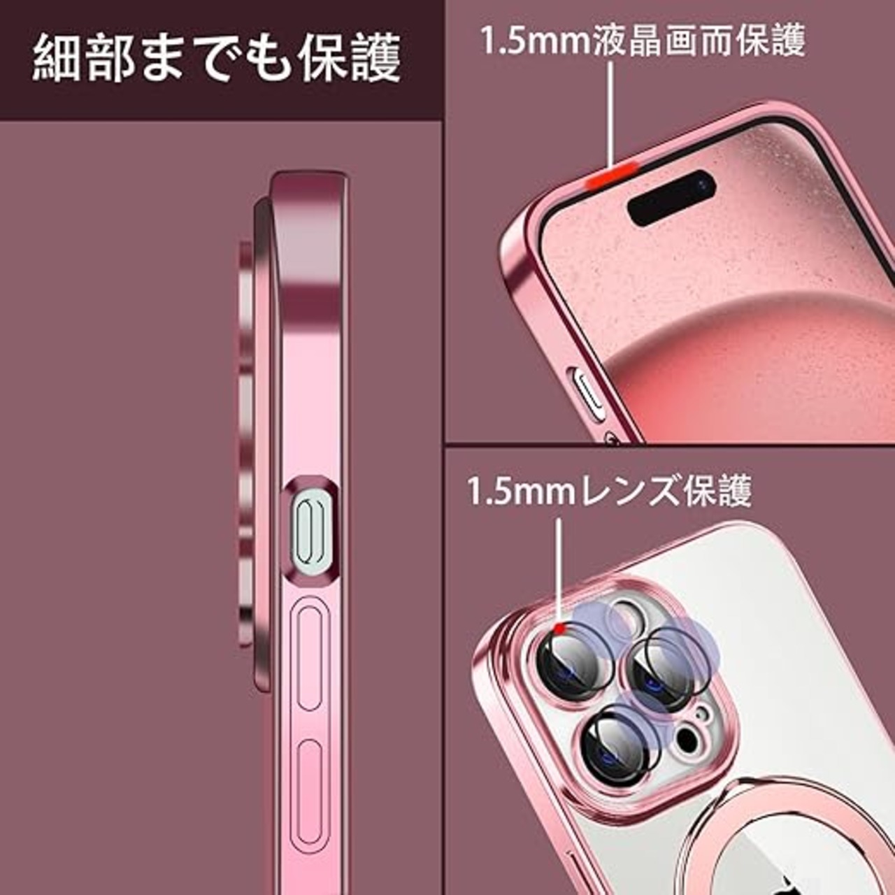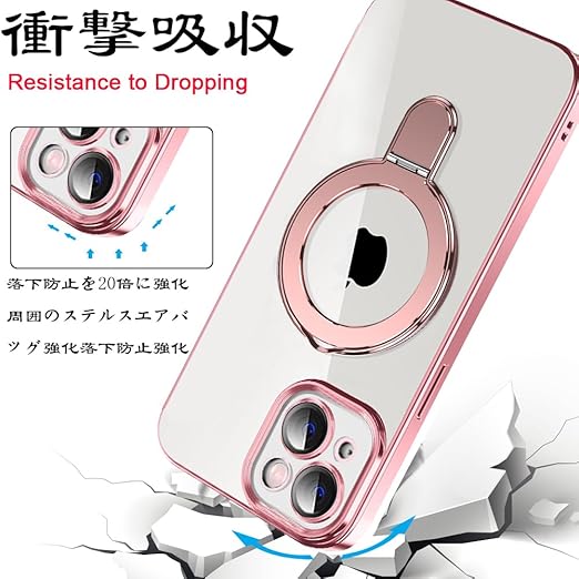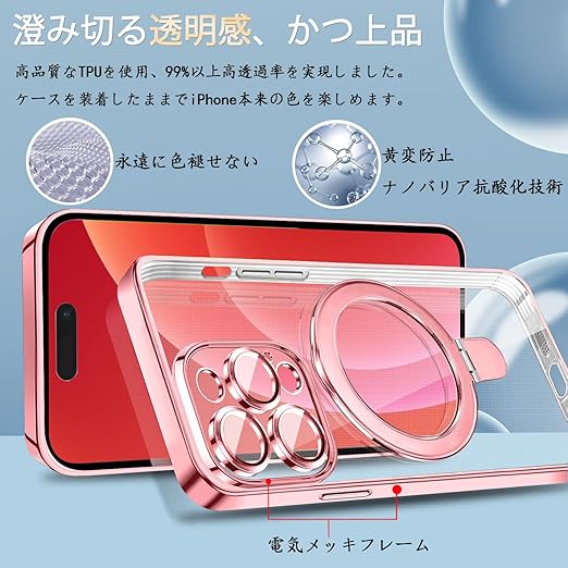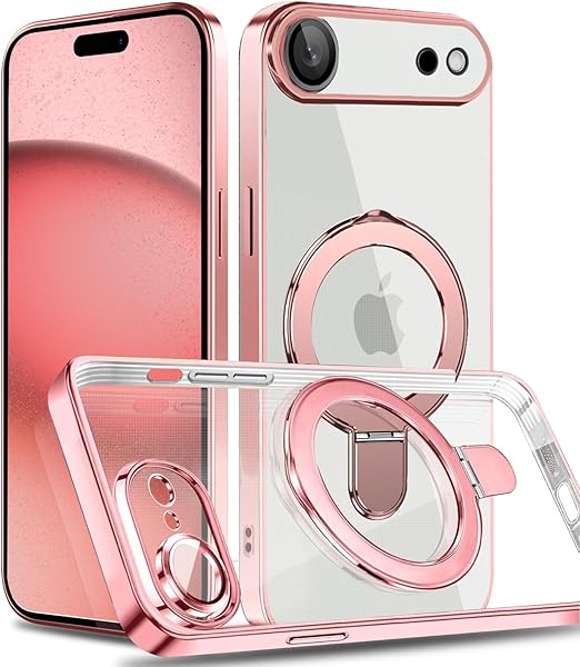 MuZiF iPhone 17 Air 用 ケース MagSafe対応 リング付き クリア メッキ加工 カバー 車載ホルダー対応 多機能 レンズ保護 薄型軽量 耐衝撃構造 透明柔らかいTPU アイフォン17 Air 用 磁気カバー クリアケース(iPhone 17 Air用,ローズゴールド) a