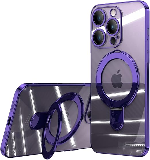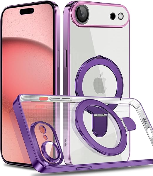 MuZiF iPhone 17 Air 用 ケース MagSafe対応 リング付き クリア メッキ加工 カバー 車載ホルダー対応 多機能 レンズ保護 薄型軽量 耐衝撃構造 透明柔らかいTPU アイフォン17 Air 用 磁気カバー クリアケース(iPhone 17 Air用,パープル) a