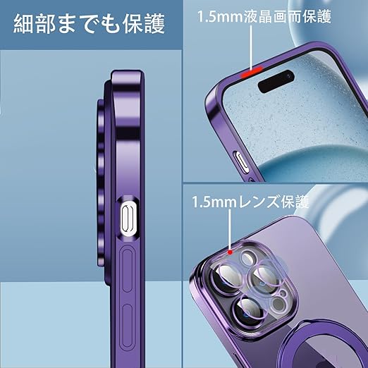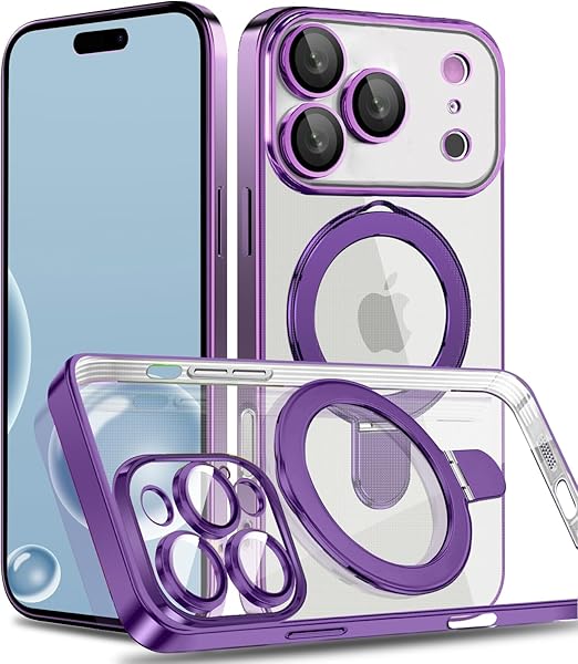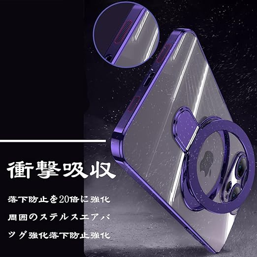MuZiF iPhone 17 Pro 用 ケース MagSafe対応 リング付き クリア メッキ加工 カバー 車載ホルダー対応 多機能 レンズ保護 薄型軽量 耐衝撃構造 透明柔らかいTPU アイフォン17 Pro 用 磁気カバー クリアケース(iPhone 17 Pro用,パープル) a