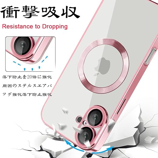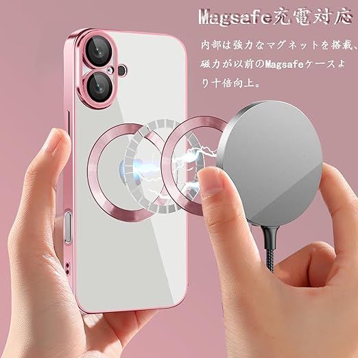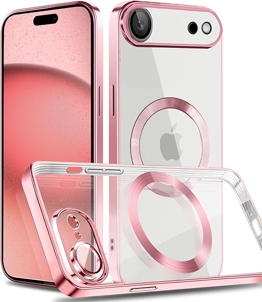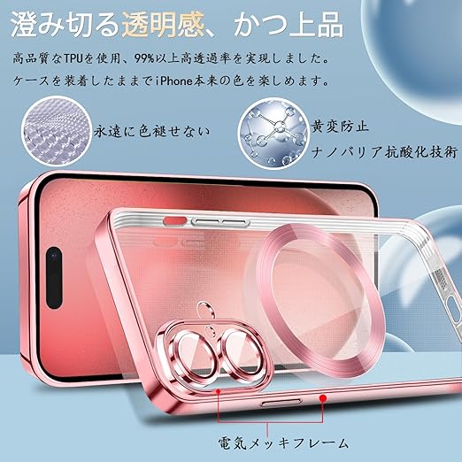 MuZiF iPhone 17 Air 用 ケース クリア メッキ加工 Magsafe対応 永久磁石 レンズ保護 TPU ソフトケース 薄くて軽い 人気 耐衝撃 携帯カバー アイフォン17 Air 用 クリアケース (iPhone 17 Air用,ローズゴールド a