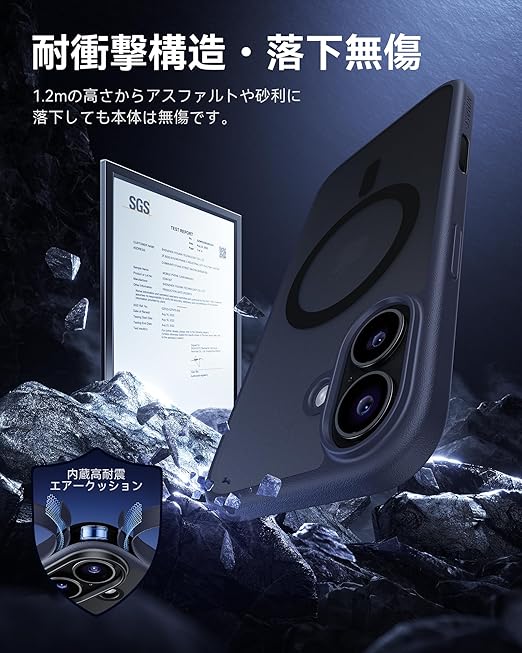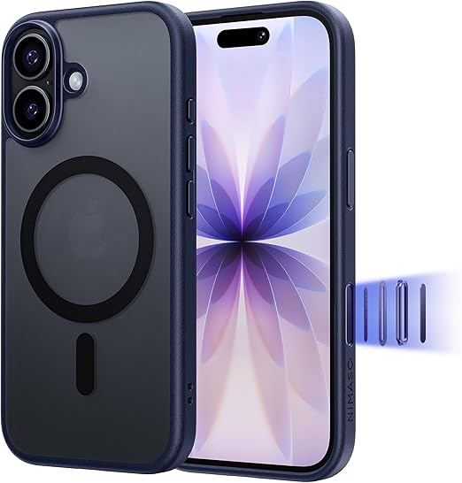 NIMASO iPhone 17 用 ケース MagSafeアクセサリー対応 スマホケース マグセーフ カバー 滑り止め マット仕上げ 全面保護 いPhone17用 耐衝撃 米軍MIL規格取得 ワイヤレス充電 カメラコントロールカバー ストラップホール付き 携帯スマホケース アイフォン17対応 (6.3インチ) ブルー (黒羽シリーズ) NSC25G1874 a