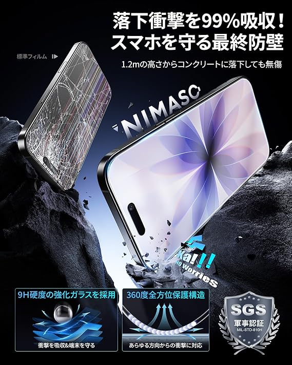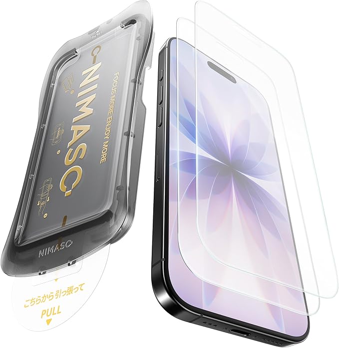 NIMASO アンチグレア iPhone 17用 ガラスフィルム 反射防止 保護フィルム 指紋防止 さらさら 簡単に貼り付け 自動除塵 高感度タッチ 強化ガラス ガイド枠付き 2枚セット いPhone 17対応(6.3インチ)DSP25F1705 a