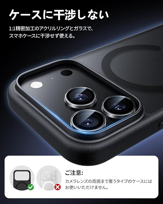 「対応機種」 iPhone 17 Pro/iPhone 17 ProMax 用(三眼レフ)ご注意:レンズ部分のみがくりぬかれているタイプのケースにはお使いいただけません。