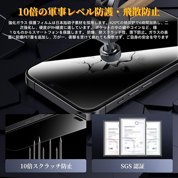 【360°覗き見防止】NIUZHAI For iPhone 17 Pro Max用 ガラスフィルム 覗き見防止 360 対応 アイフォン17プロマックス 保護フィルム 360° 全方向 覗き見 17 Pro max 強化ガラス 画面フィルム【プライバシー/のぞき見防止/上下左右 見えない/気泡防止/指紋防止/耐衝撃】いPhone 17Pro Max対応 液晶保護フィルム a