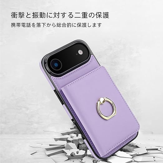 Noaivoky 適用 iPhone 17 Air ケース 手帳型 アイフォン17 エア ケース 背面カード収納 リング付き スマホケース いphone17air 財布型 スタンド機能 携帯カバー 17 air PUレザー RFIDブロック機能 おしゃれ あいふおん17エア カバー 防水 耐摩擦 耐衝撃 アイホン17 エア カード リング - パープル a