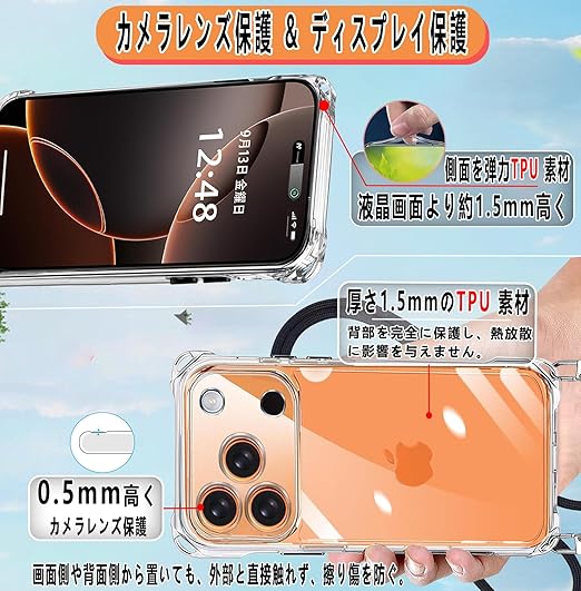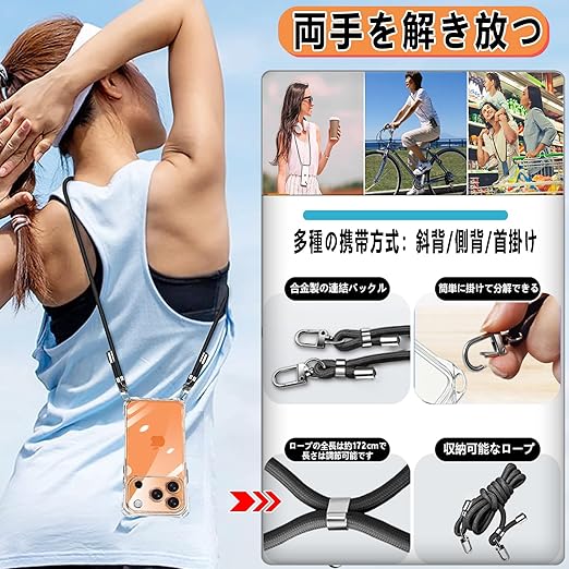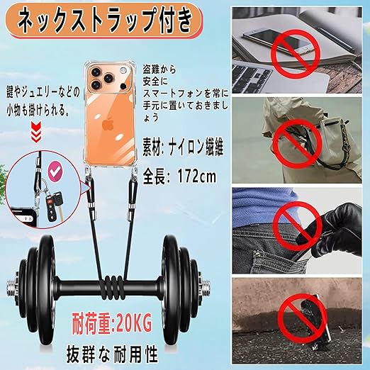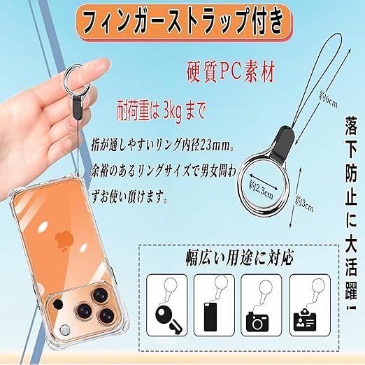 【ストラップ2枚付き & 両手を解き放つ & ワイヤレス充電対応】本 iPhone 17 Pro Max (2025)対応ケースにはフィンガーストラップとネックストラップが付属します(フィンガーストラップ長さ:10cm、ネックストラップ装着時の最大調整長:86cm。)電話ケースの特別な四隅のデザインにより、電話を縦または横に肩に掛けることができ、ストラップはいつでも調整および取り外しできます。このアクセサリーはファッションだけでなく、通常のストラップよりも快適で実用的です。 作業、旅行、出張、シ