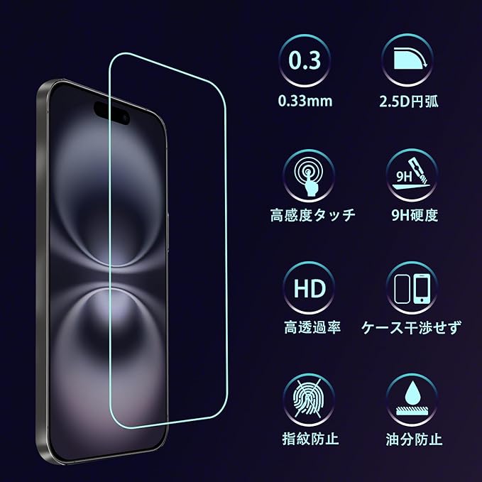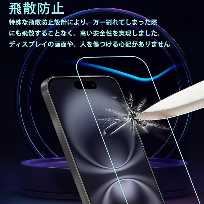 【表面硬度9H】iPhone 17 ガラスフィルム カッターなどの鋭利なものを当たってもキズが付きにくくて高い強度を持ち表面硬度9Hが特徴です。ハードコーティング技術は、衝撃を最小限に抑えて画面の破損を抑え、すり傷防止や