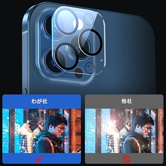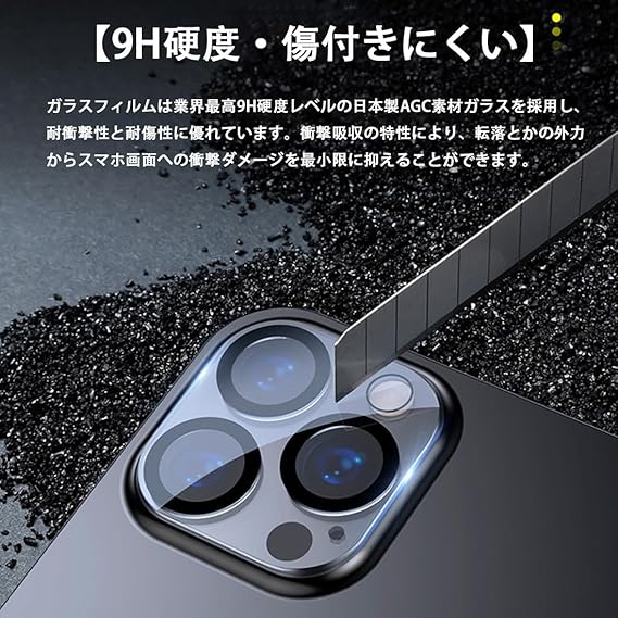 【高品質素材】旭硝子ガラスを採用し、表面硬度は9H。万が一の破損時も衝撃を和らげます。飛び散らない安全性の高い仕様です。 撥水性が高く、耐油性に優れ、指紋などの汚れがついても拭取るだけでキレイに。装着していない状態のように、繊細な写真の撮影が可能です。