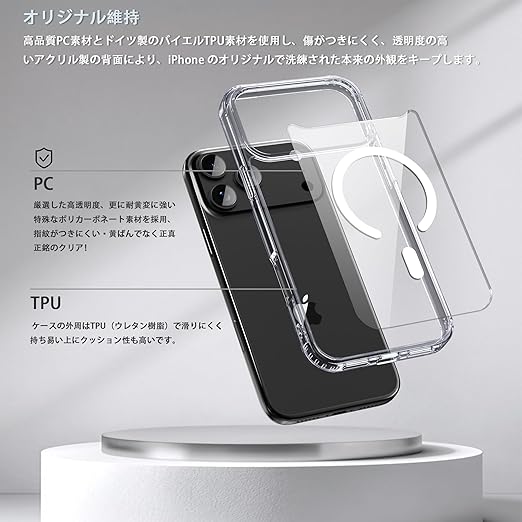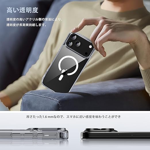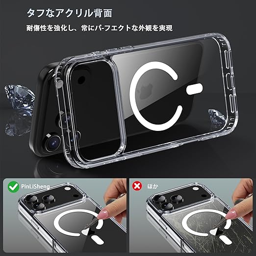 iPhone 17 PRO MAX ケース スマホカバー マグネット搭載 ワイヤレス充電 耐衝撃 指紋防止 滑り止め 米軍MIL規格・Magsafe対応 アイフォン17 PRO MAX 用カバー 6.9インチ PinLiSheng (クリア, Iphone 17 PRO MAX) a