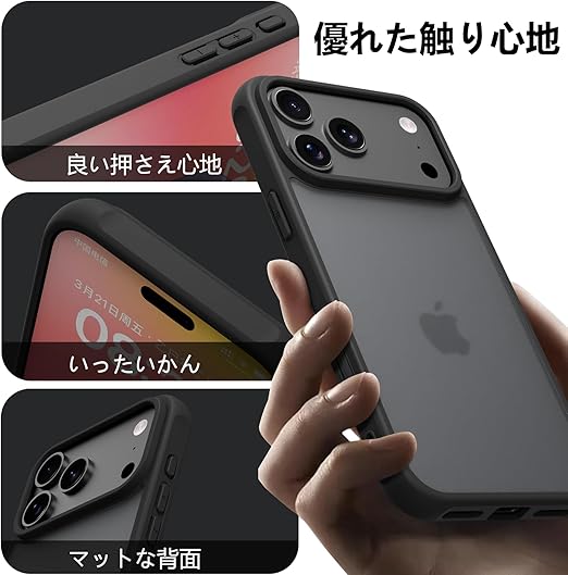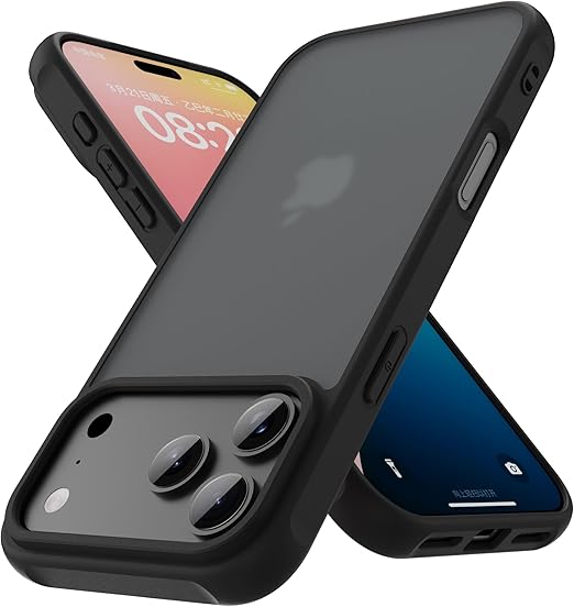 PinLiSheng iPhone 17 Pro Max ケース マット感 半透明 耐衝撃 滑り止め 指紋防止 米軍MIL規格 黄変防止 ストラップホール付き ワイヤレス充電対応 スマホケース アイフォン 17Pro Max 6.9インチブラック a