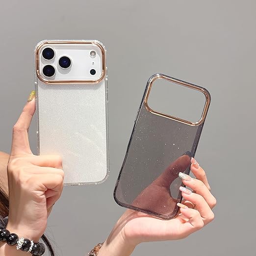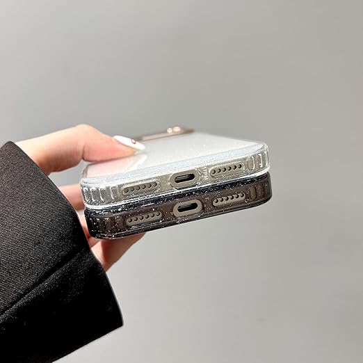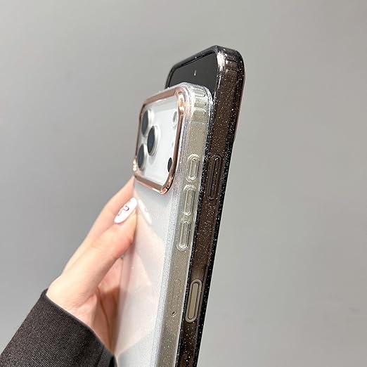 QLTYPRI iPhone 17 Pro Max 用 ケース クリア グリッター おしゃれ 韓国 キラキラ 透明 可愛い 耐衝撃 スマホケース ワイヤレス充電対応 ストラップホール付き アイフォン17 Pro Max ケース 6.9インチ 対応 - ブラック a