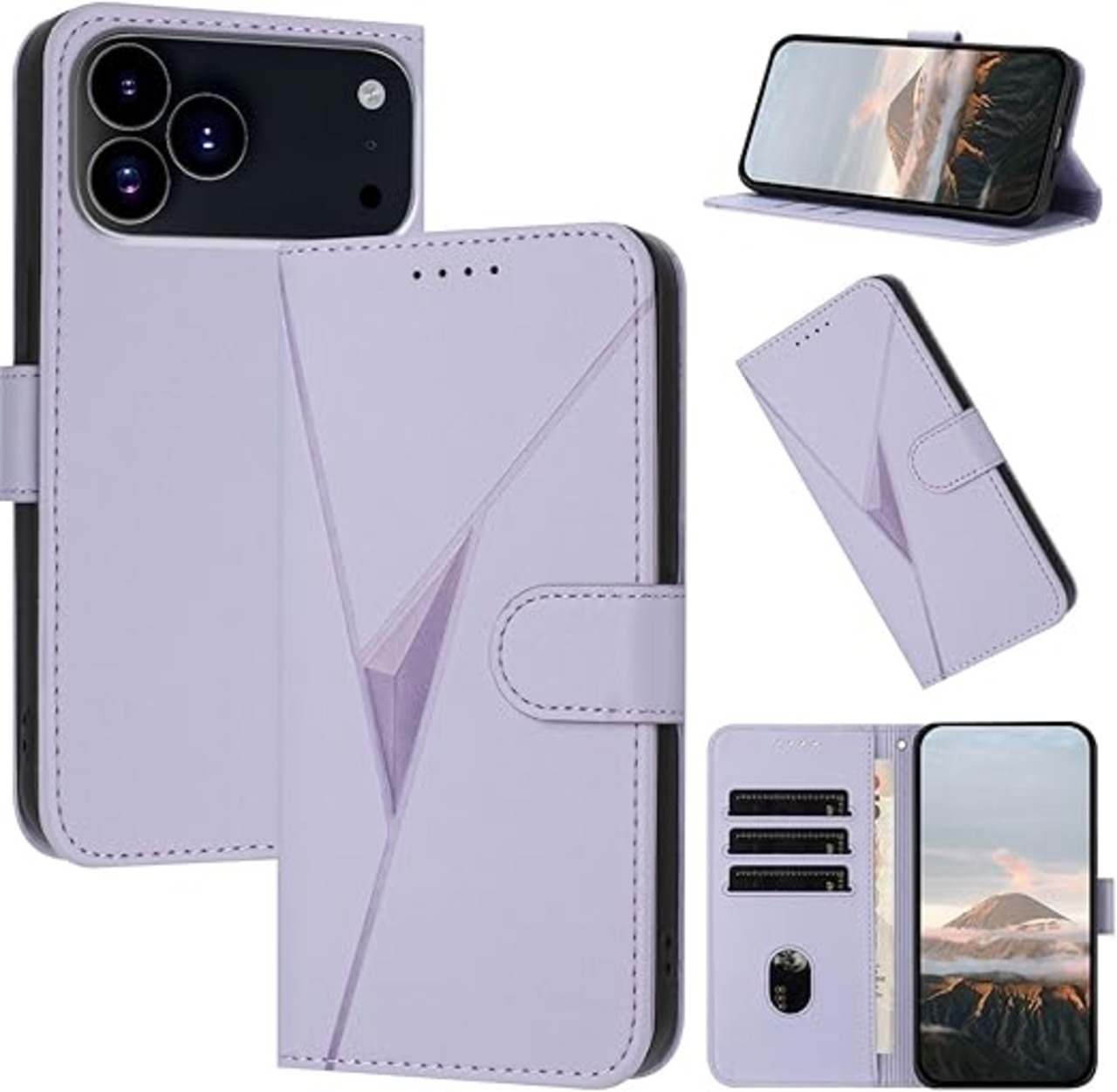 Reddylin 対応 iPhone 17 Pro Max ケース 手帳型 いphone17promax ケース 手帳型 立体感のある三角模様 iPhone 17promax カバー iphone17promax スマホケース 感触が心地良い スタンド機能 カード収納 アイフォン17プロマックス 携帯カバー デザイン感と あふれる 耐衝撃 滑り止め指紋防止,ライトパープル a