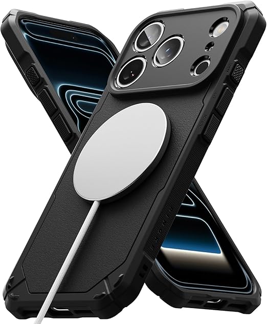 【Ringke】iPhone 17 Pro Max ケース RUGGED GEAR MAGNETIC TPU 落下防止 耐衝撃 滑り止め 軽量 頑丈 マグネット搭載 エアークッション ラギッド スマホケース スマホカバー アイフォンプロマックス (ストラップホールあり) - Magnetic Black a