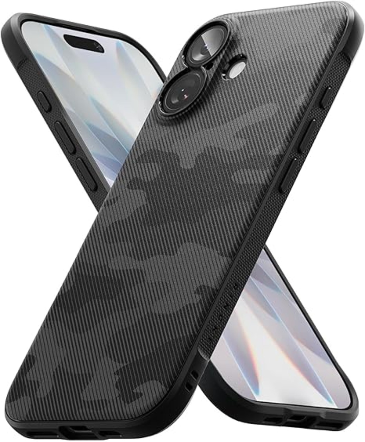【Ringke】 iPhone 17 ケース ONYX TPU 滑り止め 落下防止 耐衝撃 指紋防止 ワイヤレス充電対応 軽量 柔軟 スマホケース カバー アイフォン (ストラップホールあり) - Camo Black a