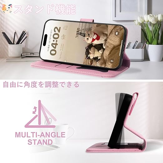 横置きスタンド機能 iPhone17Pro ケースは画面側のカバーを折り返してスマホを自立させられ、画面を支える向きをお好みの角度や高さに調整でき、長時間で動画を視聴しても腕が疲れません。また、携帯ケースなら安定感を保ちながら動画を楽しむことがで