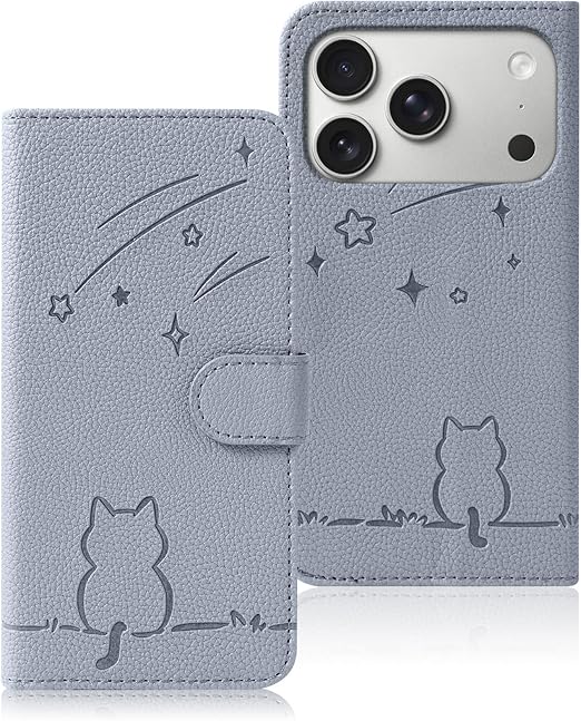 Rosbtib 用の iphone 17 Pro ケース 手帳型 いphone17pro ケース 流れ星子猫 iPhone17Pro 手帳型ケース 可愛い 猫柄 ねこ いphone17 pro ケースカバー 財布型 耐衝撃 アイフォン17プロ 携帯カバー カード収納 iPhone17プロ スマホケース オシャレ 軽量 耐久性 スタンド機能 PUレザー 内蔵マグネット 携帯ケース(グレー) a