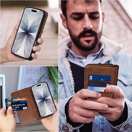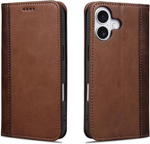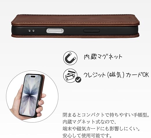 Rssviss iPhone 17 用 ケース 手帳型 iPhone 17 スマホケース カード収納 スタンド機能 アイフォン17 用 ケース 内蔵マグネット ベルトなし 耐衝撃 保護 ダークブラウン a