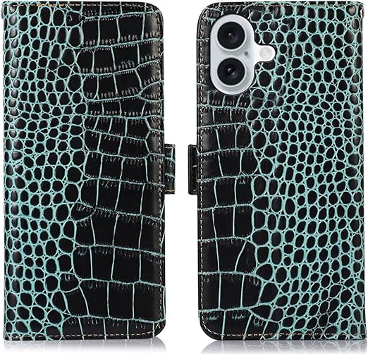 for iPhone 17 ケース 手帳型 本革 ワニ柄 アイフォン 17 牛革 財布型 鰐柄 クロコダイル柄 耐衝撃 [RFIDブロッキング] カード収納 マグネット式ボタン 横置きスタンド機能 便利 財布型携帯 スマホケース 水色 Rureu a