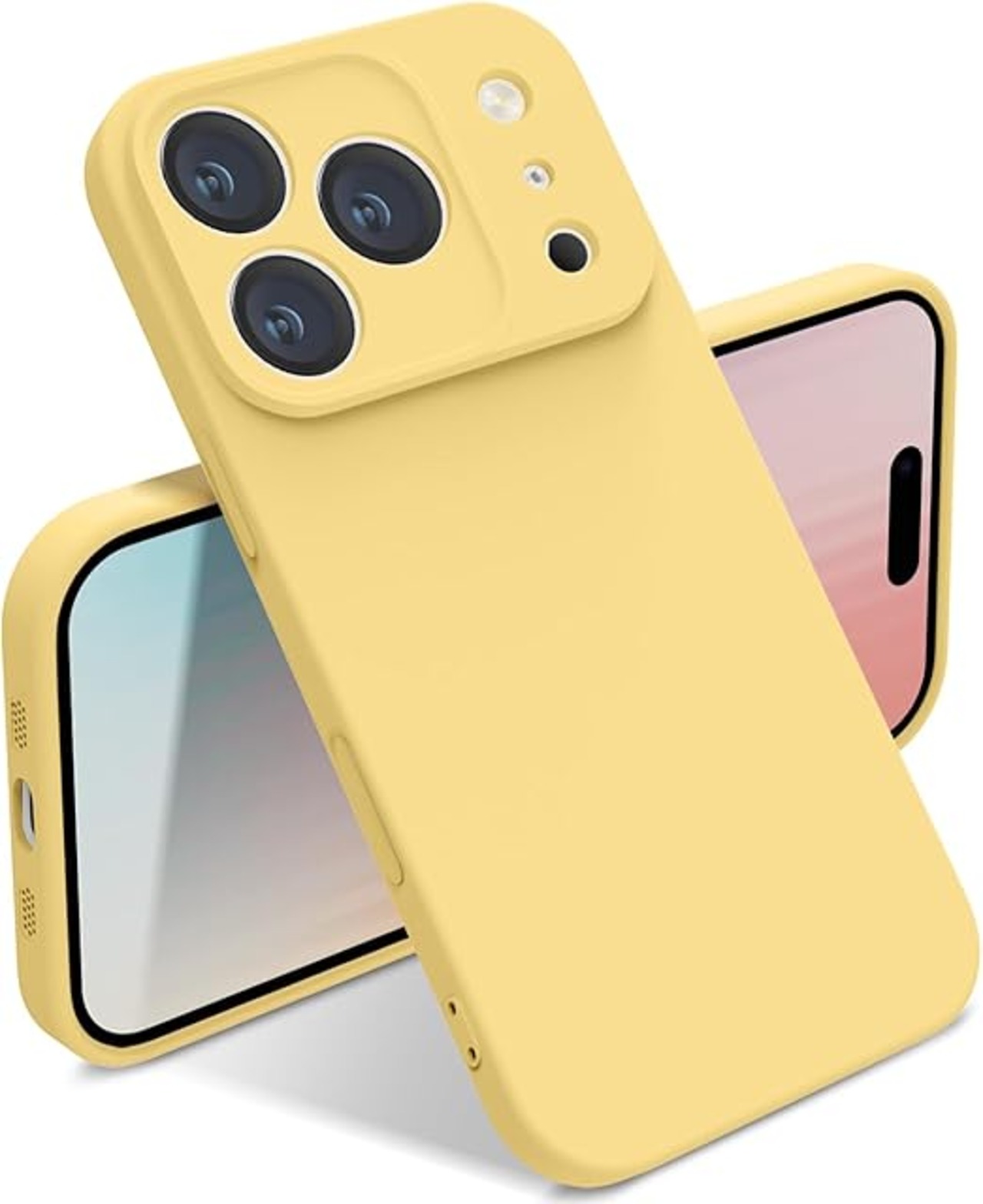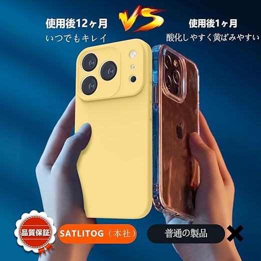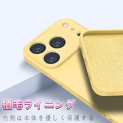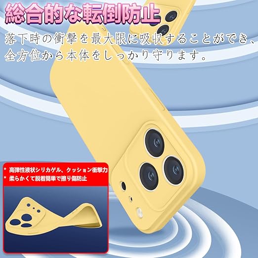 SATLITOG 用の ケース iPhone 17 Pro シリコン カバー 液体シリコン スマホケース 耐衝撃 薄型 軽量 ソリッドカラー シンプル ストラップホール付き マット感 人気 指紋防止 レンズ保護 ソフト ワイヤレス充電対応 (イエロー) a
