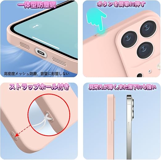 SATLITOG 用の ケース iPhone 17 Pro シリコン カバー 液体シリコン スマホケース 耐衝撃 薄型 軽量 ソリッドカラー シンプル ストラップホール付き マット感 人気 指紋防止 レンズ保護 ソフト ワイヤレス充電対応 (ピンク) a