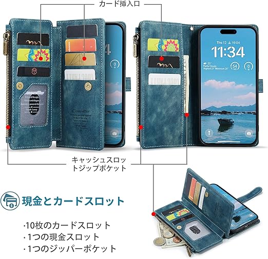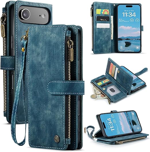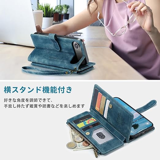 SeGinn iPhone 17 Air 対応 ケース 手帳型 カバー PUレザー 多財布デザイン スタンド機能付き 磁気バックル付き カード収納 コイン収納 アイフォン 17 Air ケース 手帳型 大容量財布型 収納ポケット 衝撃防止 擦り傷防止 スクリーン/カメラ保護 実用性高 iPhone 17 air 財布型ケース (ブルー) a