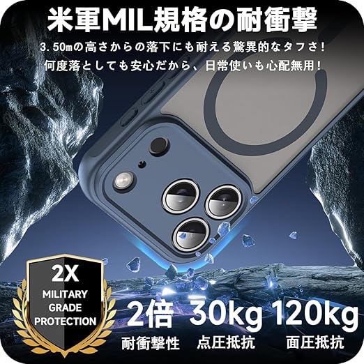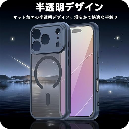 対応 iPhone 17 Pro Max ケース PC+TPU MagSafe対応 衝撃吸収 落下防止 米軍MIL規格取得 いPhone 17 Pro Max 半透明 カバー 黄ばみにくい スマホケース スマホカバー ワイヤレス充電磁気 薄型 (ダークブルー)SEIP17PMTPC-LAN a