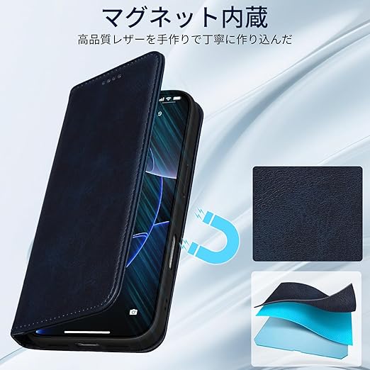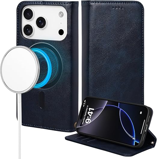 Shlybaay iPhone 17 Pro 用 ケース 手帳型 MagSafe対応 カード収納 アイフォン 17 プロ 用 カバー ワイヤレス マグネット付き いphone17 pro 手帳型ケース マグセーフ スタンド機能 RFID ブロッキング 6.3インチ W1M ダークブルー a