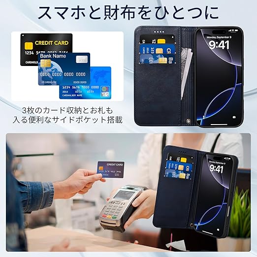 カード収納:アイフォン 17 プロ用 手帳型ケースの内側