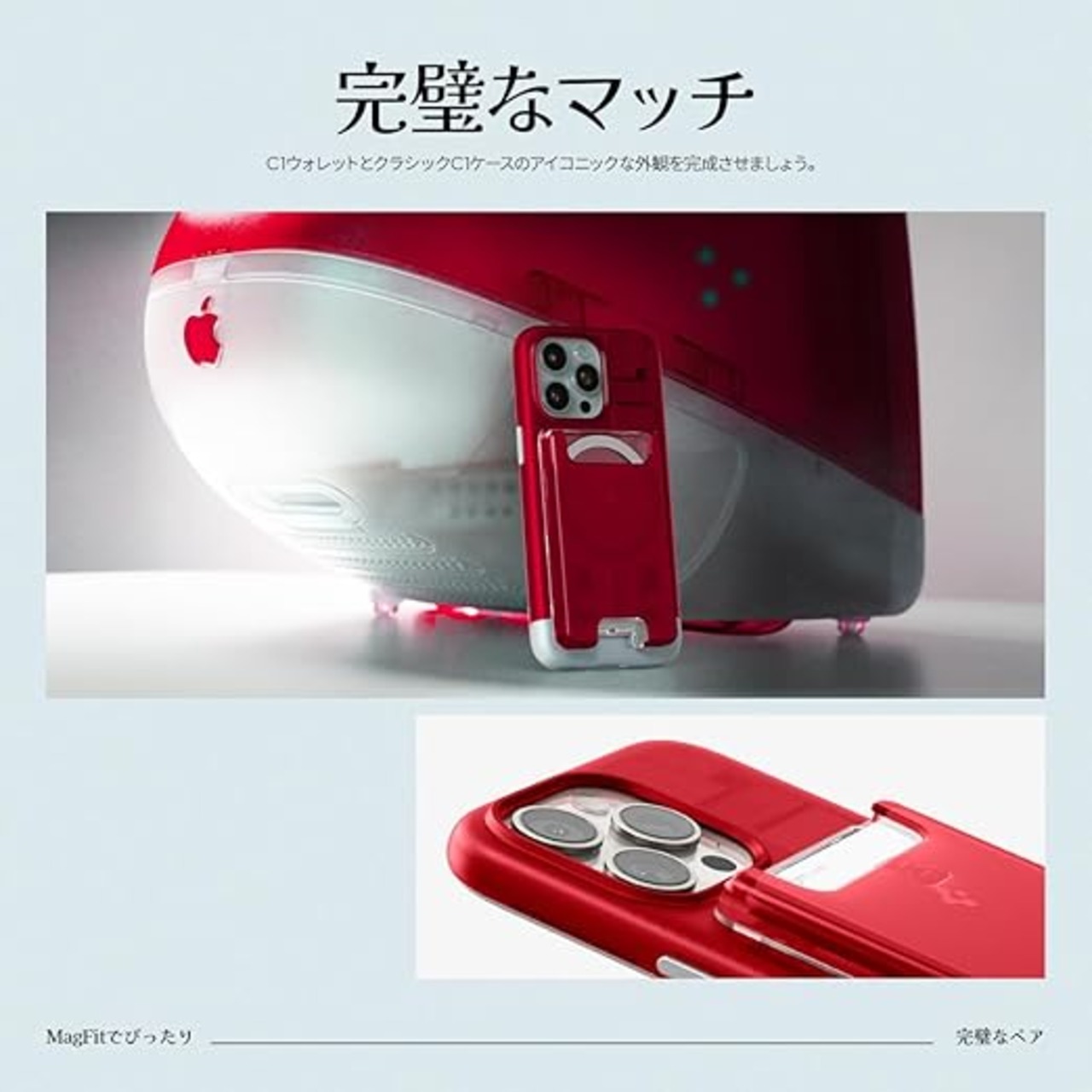 [Spigen] MagSafe対応カードケース 3枚カード収納 iMacデザイン マグネット搭載 iPhone 17 Pro Max iPhone 17 Pro iPhone 17 iPhone Air iPhone 16/15/14/13/12シリーズ マグネット スマホ カードケース 交通系 ICカード クラシック・C1 AFA07399 (ルビー) a