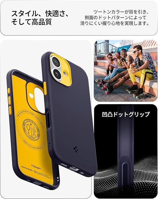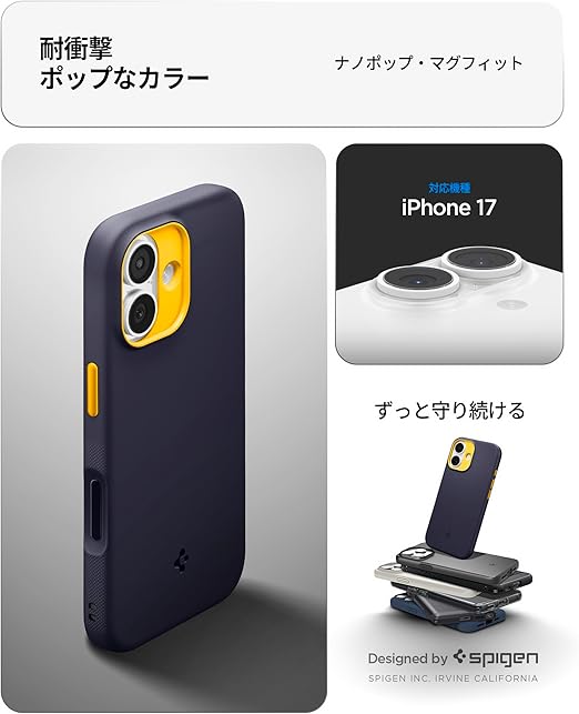 Spigen 【創業18年の技術力】iPhone 17 MagSafe対応 マグネット搭載 ストラップホール 米軍MIL規格 ナノポップ・マグフィット (ブルーベリー・ネイビー) ACS09990 a