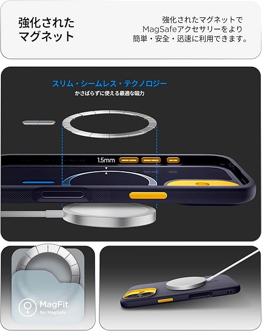 【MagSafe完璧対応】強化されたマグネットが内蔵されており、強い固定力でMagSafe機能を便利に利用できます。