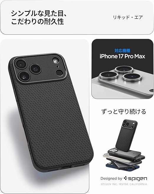 Spigen 【創業18年の技術力】 iPhone 17 Pro Max 米軍MIL規格 ストラップホール マット TPU バンパー 耐衝撃 リキッド・エア (マット・ブラック) ACS09888 a
