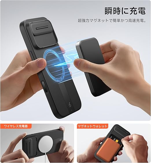 強力な磁気アタッチメント:強力な磁気(最大13.28N)を備えたこのスリムケースは、ワイヤレス充電器、カーマウント、モバイルバッテリーなどの磁気アクセサリーにスマートフォンをしっかりと固定します