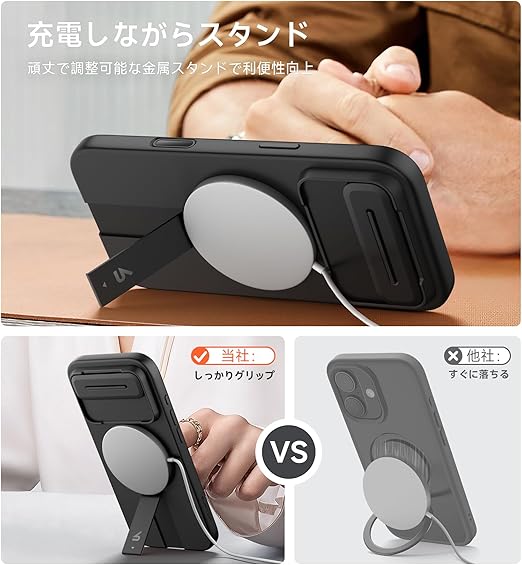 SURITCH 磁気ケースiPhone Airと互換性 とカメラ保護カバー&カメラコントロールボタン&と調整可能なスタンド 傷防止耐衝撃保護カバーiPhone 17 Air用 (ブラック) a