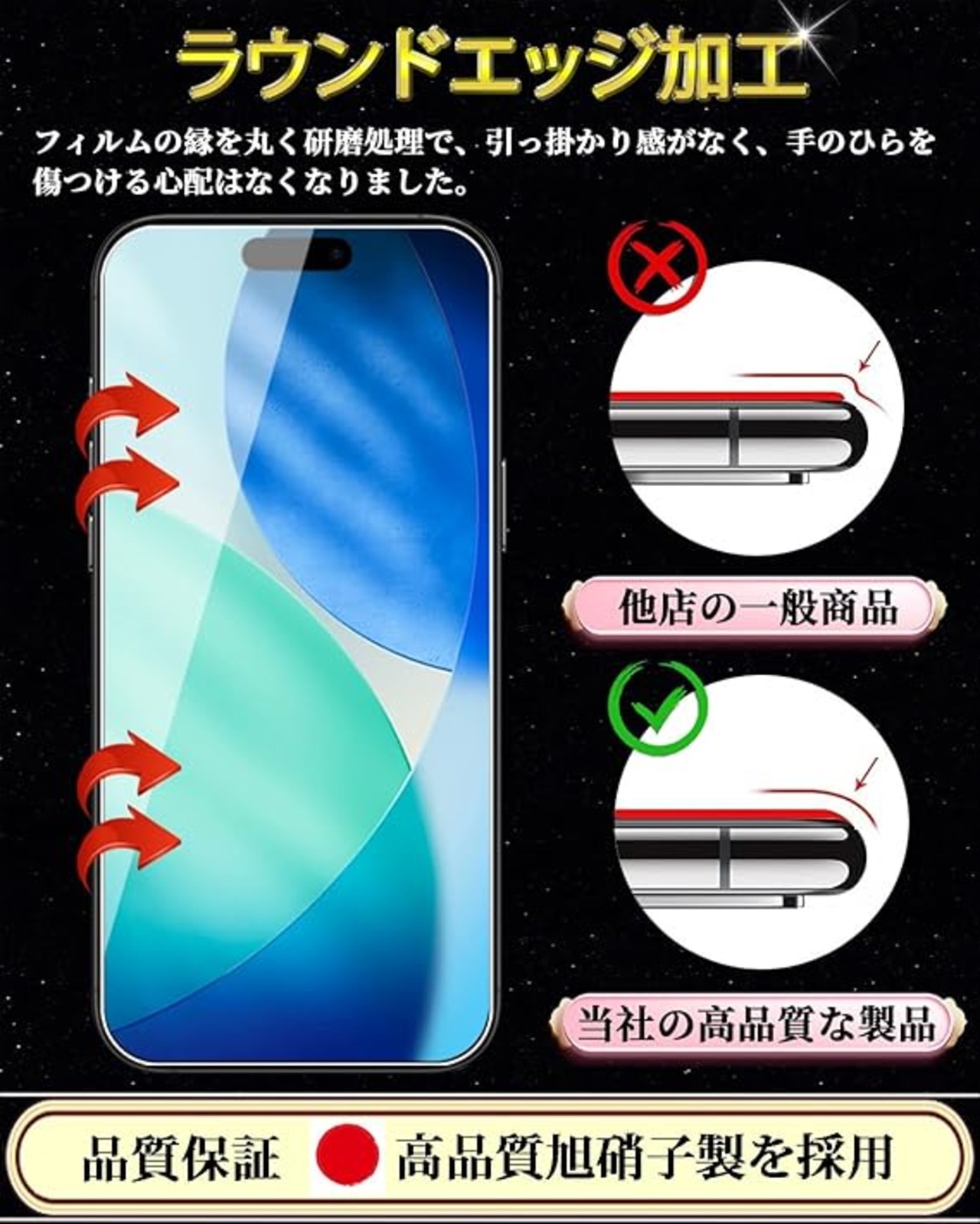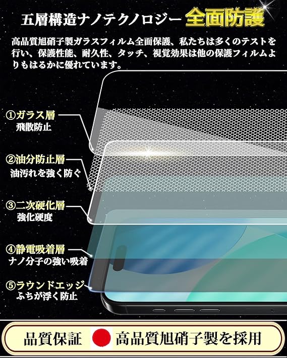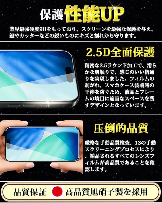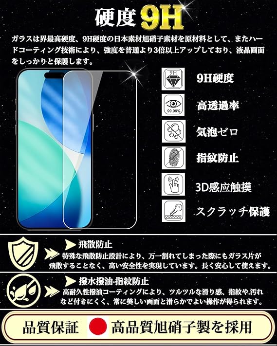 【最強硬度9H・飛散防止!対応機種】iPhone 17 ガラスフィルム一般的な液晶保護フィルムの約6倍の強度。衝撃は強化ガラスに吸収されますので、ディスプレイにかかる衝撃負荷を軽減し。ディスプレイが破損することを防ぎます。万が一の破損時も飛散防止加工によって破片はフィルムに張り付いた状態で破片がほとんど飛び散らない安全性の高いガラスになっています。