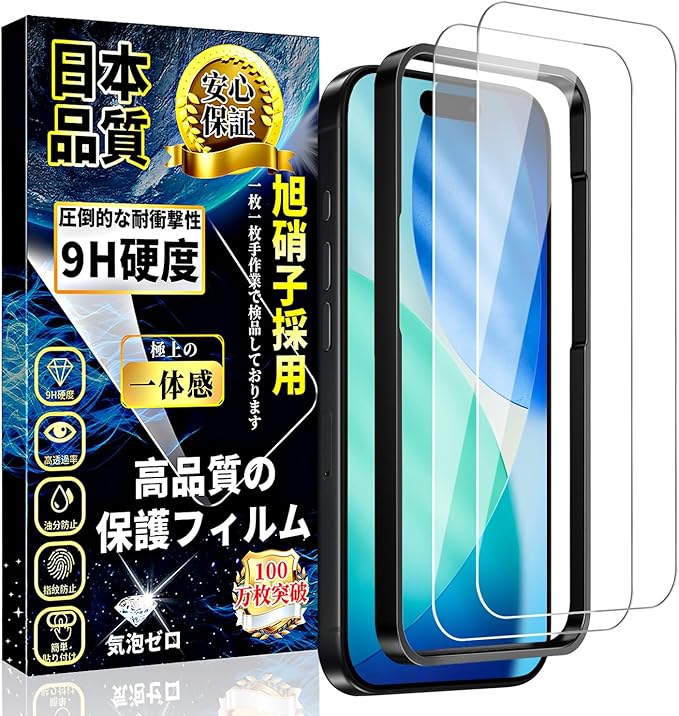 対応 iPhone 17 ガラスフィルム アイフォン17 液晶保護フィルム 旭硝子素材製【ガイド枠付き・2枚入】9H硬度 指紋防止 気泡防止 飛散防止 自動吸着 耐衝撃 高光沢 iPhone 17 強化ガラス 保護フィルム 6.3インチ a