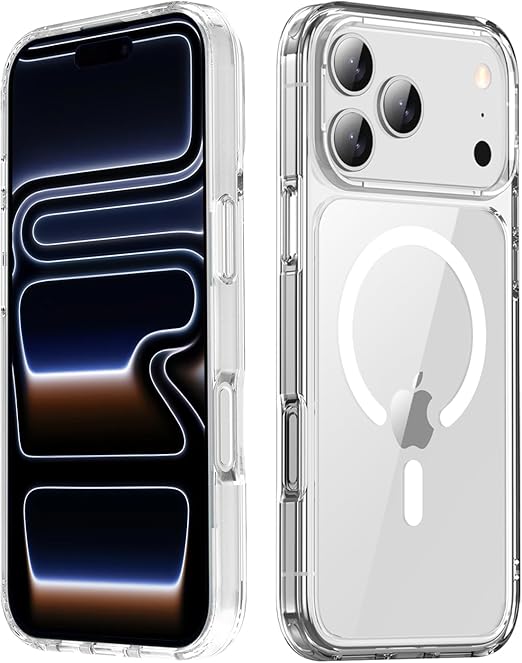 【TIFIYA】For iPhone 17 Pro Max 用 ケース クリア マグネット搭載 TPU+PC MagSafe 米軍MIL規格 軽量 衝撃吸収 スマホケース 耐久性 アイフォン 17 プロマックス 対応 ケース ワイヤレス充電対応 黄ばみなし 落下防止 iphone 17 pro max 保護カバー(透明) a