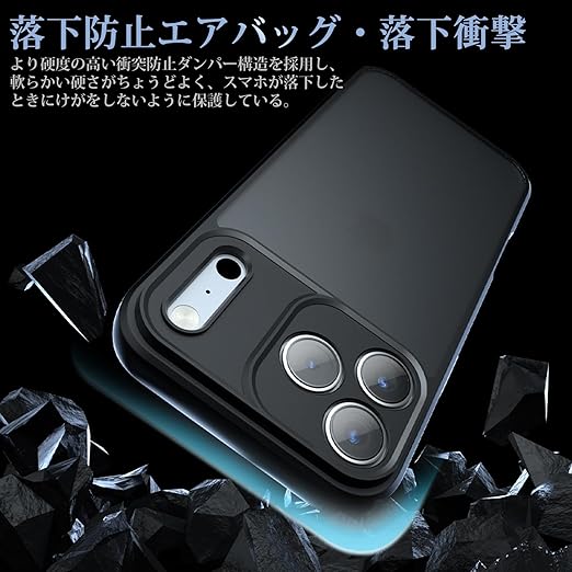 【レンズとスクリーン保護】ケースの厚さは本体より若干高く、iphone 17 proが机などの平面の物の上に置いても傷がつかない。スマホが落下した際に液晶画面やレンズに傷が付かないようにする。