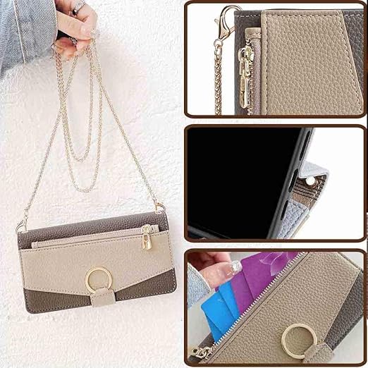 TOO&SOO 対応 iPhone 17 Air ケース 鏡付き いphone17air ケース ショルダー ストラップ付き アイフォン17エアー 携帯ケース スタンド機能 アイホン17air カバー カード収納 ミラー付き 耐衝撃 肩掛け あいふぉん17エアー スマホケース おしゃれ 女性 柔らかいTPU iPhone 17 Air ケース 手帳型 斜め掛け - 茶色 a