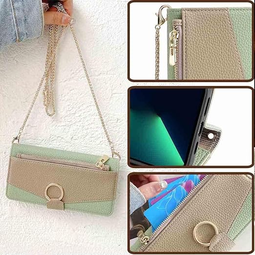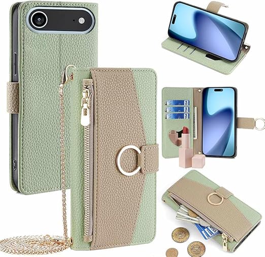 TOO&SOO 対応 iPhone 17 Air ケース 鏡付き いphone17air ケース ショルダー ストラップ付き アイフォン17エアー 携帯ケース スタンド機能 アイホン17air カバー カード収納 ミラー付き 耐衝撃 肩掛け あいふぉん17エアー スマホケース おしゃれ 女性 柔らかいTPU iPhone 17 Air ケース 手帳型 斜め掛け - 緑 a