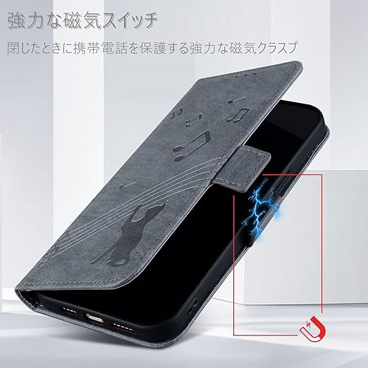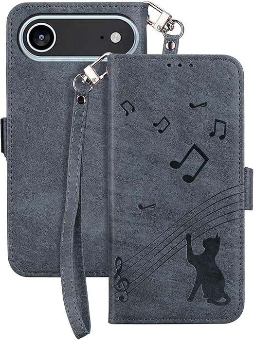 高品質素材:phone17 Air ケース 高品質の人工皮革製で、音楽と猫のグラフィックが施されています、耐衝撃・放熱機能を備え、携帯電話をあらゆる面から保護します。