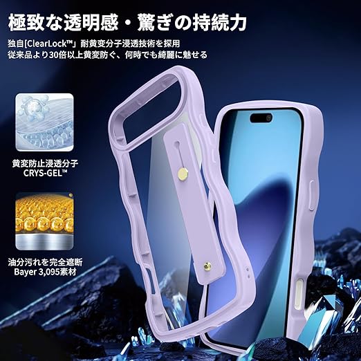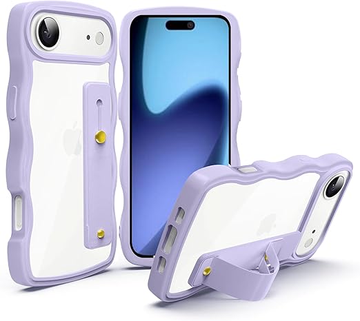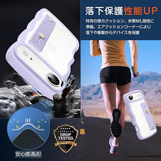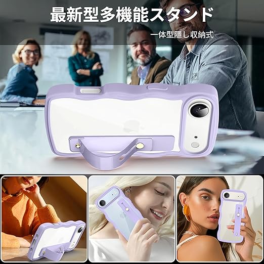 iPhone 17 Air 用 ケース クリア スタンド機能 アイフォン 17 Air 用 スマホケース グーグル 耐衝撃 カバー 透明 軽量 薄型 おしゃれ 人気 ストラップホール (パープル) a