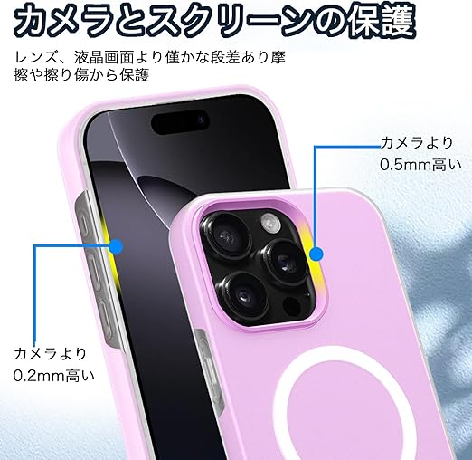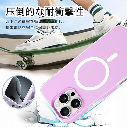 【MagSafeおよびワイヤレス充電対応】このケースはMagSafe対応で、さらにワイヤレス充電にも対応しています。ケースを装着したままで、充電器に置くだけで素早く充電が完了する便利さを提供します。マグネット内蔵により、MagSafeアクセサリーとの互換性も抜群。面倒なケーブルの抜き差しをしなくても、手軽に充電ができるので、忙しい日常でもストレスなく使用できます。ケースの設計は、充電効率を最大化するた