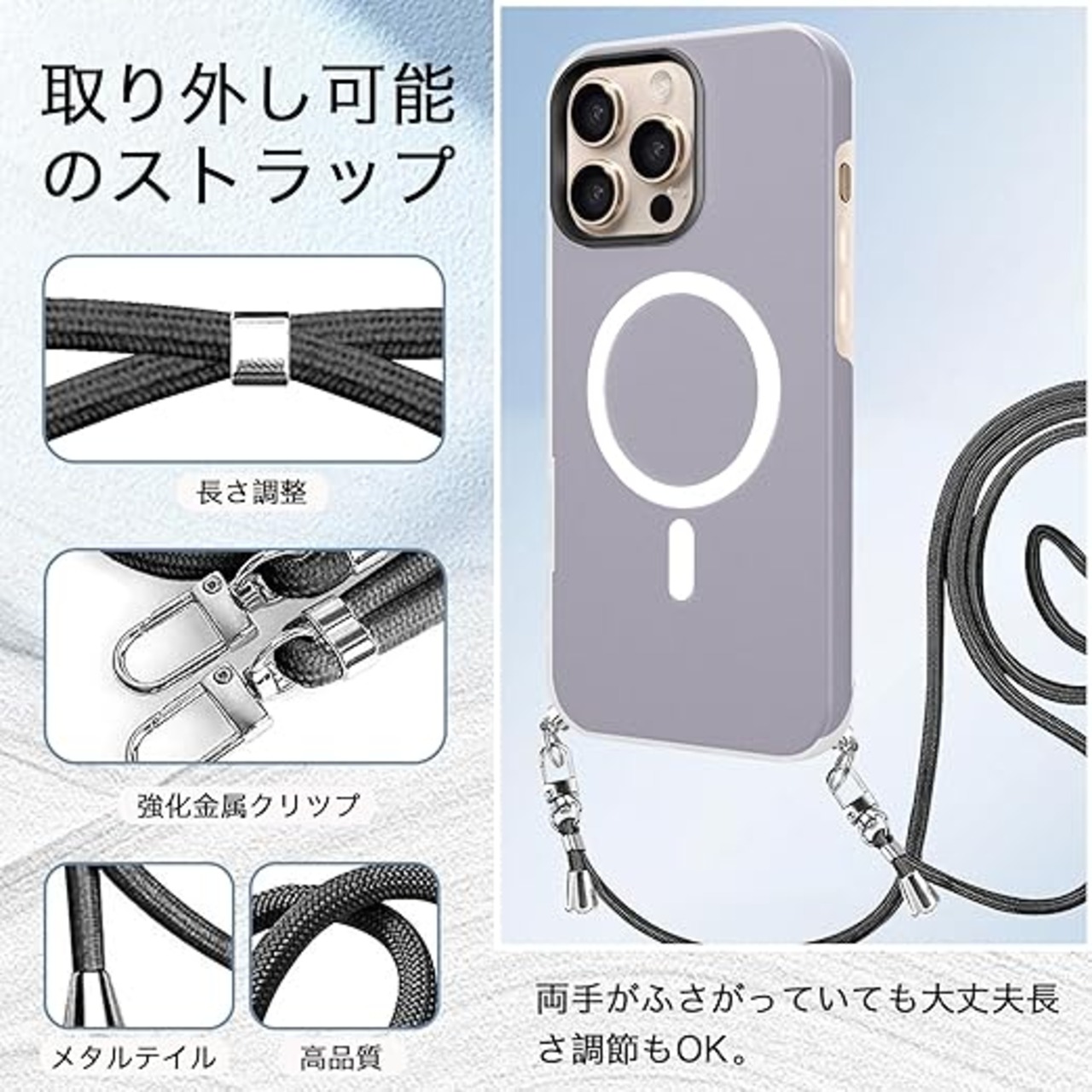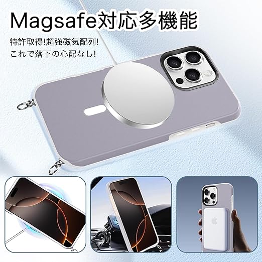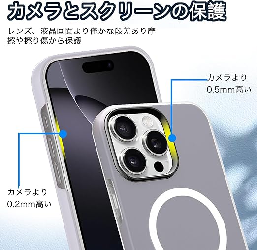 【MagSafeおよびワイヤレス充電対応】このケースはMagSafe対応で、さらにワイヤレス充電にも対応しています。ケースを装着したままで、充電器に置くだけで素早く充電が完了する便利さを提供します。マグネット内蔵により、MagSafeアクセサリーとの互換性も抜群。面倒なケーブルの抜き差しをしなくても、手軽に充電ができるので、忙しい日常でもストレスなく使用できます。ケースの設計は、充電効率を最大化するた